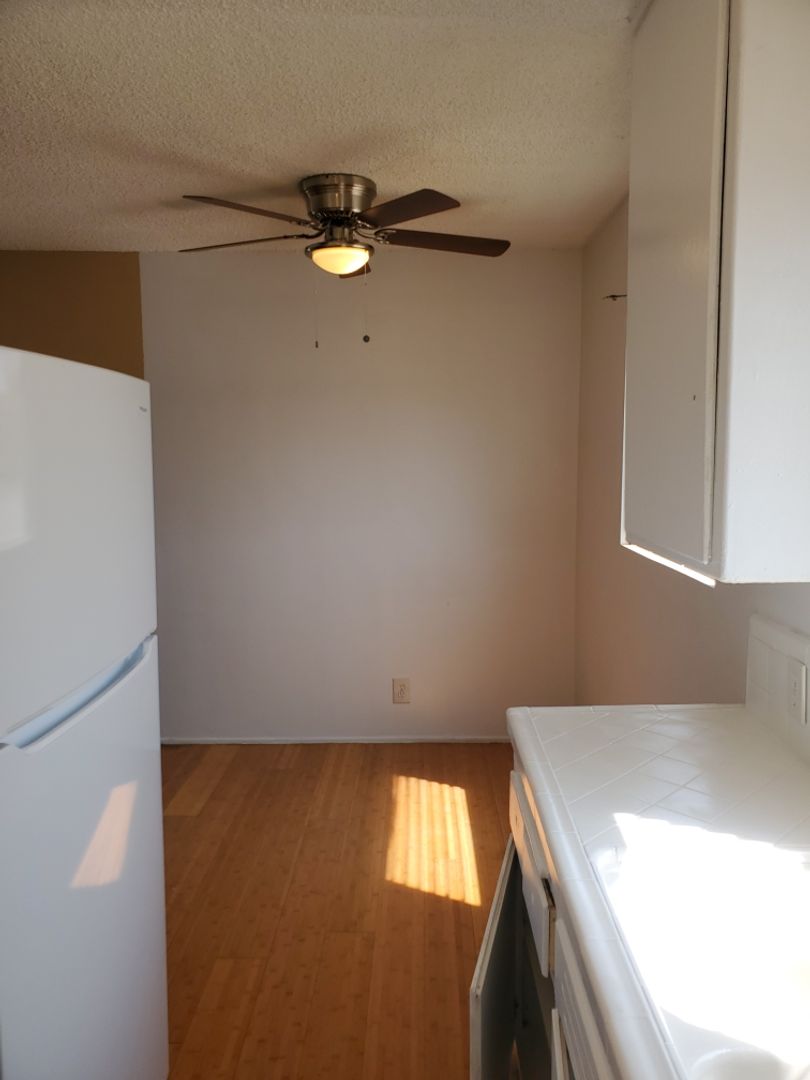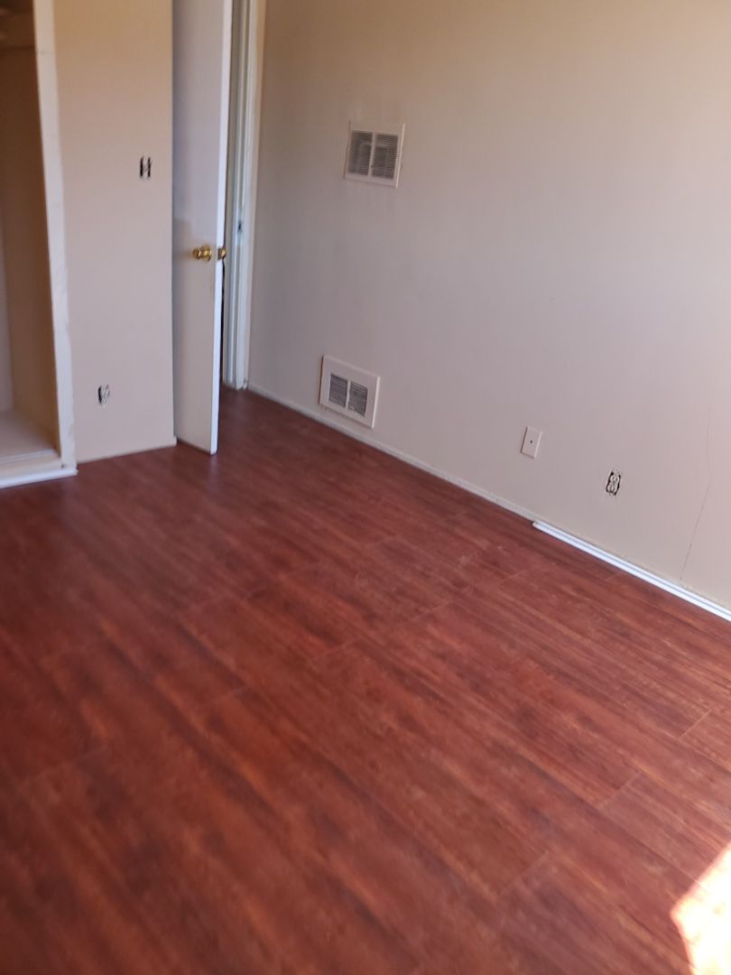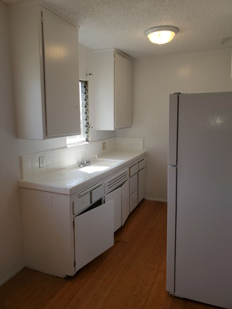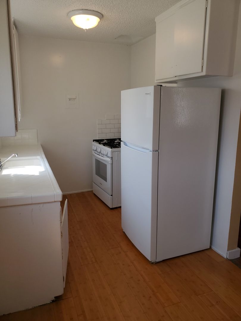 First floor apartment- laminate flooring, freshly painted, new refrigerator and stove, laundry room on site. Garage and 1 parking space on pad in front of garage door, located across from large shopping centers that include supermarkets, gym and hardware store