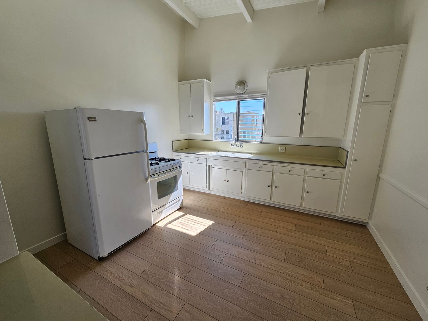 New Flooring, Kitchen with lots of storage, and fridge & stove included. Big windows, Lots of Natural Light. Tenant will receive 2 individual (not tandem), off-street parking spaces, Laundry room on-site, and Sparkling Pool.