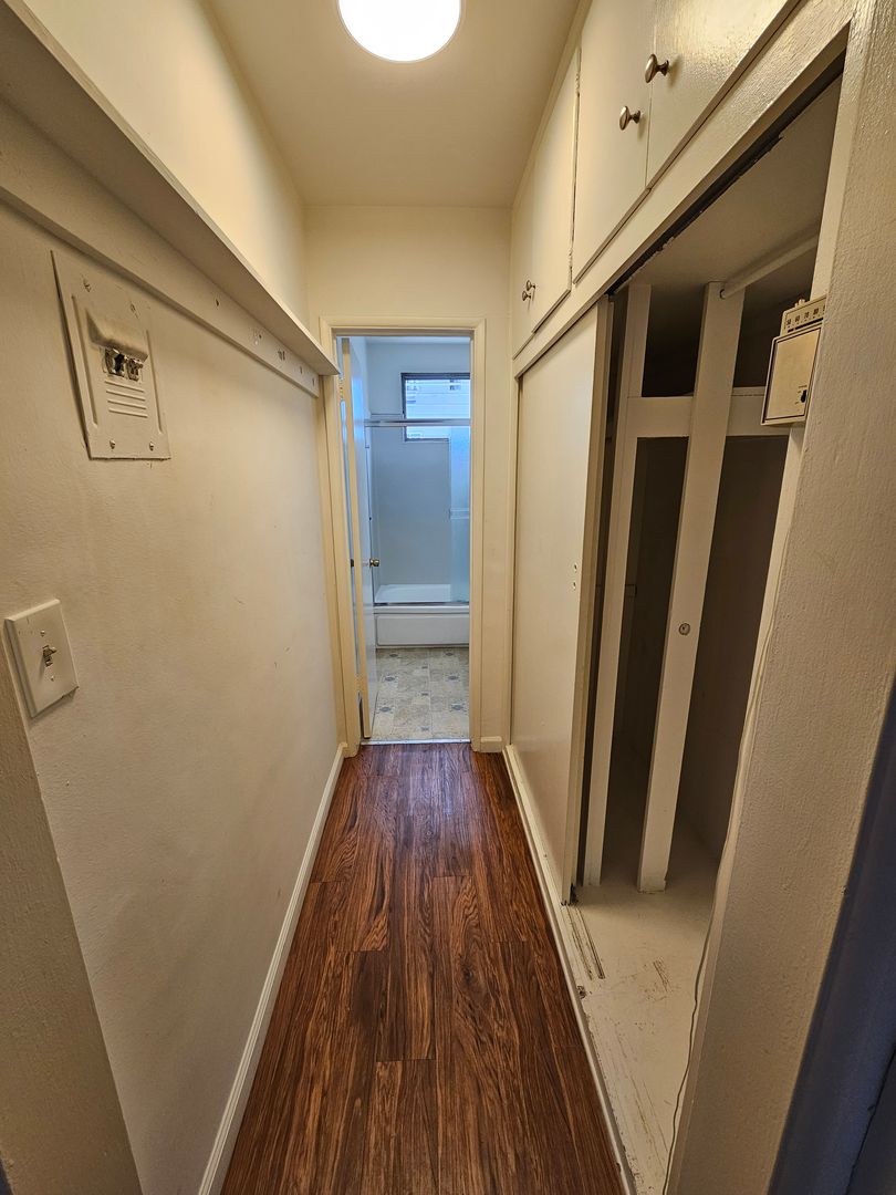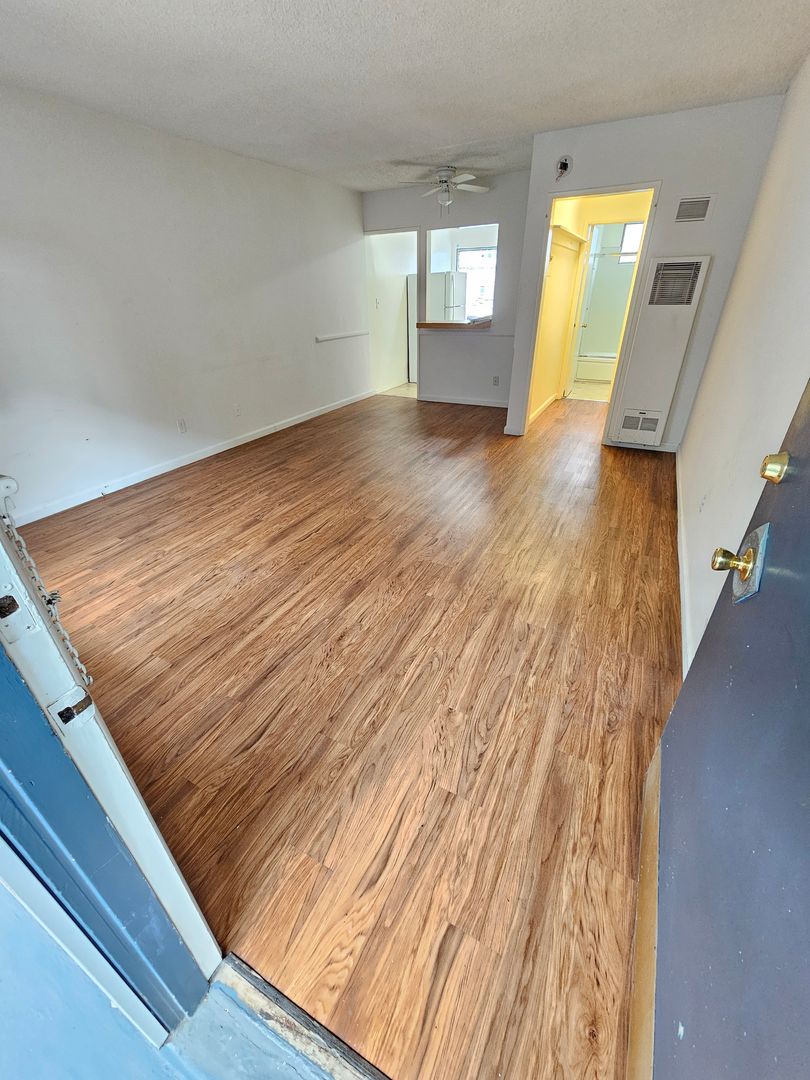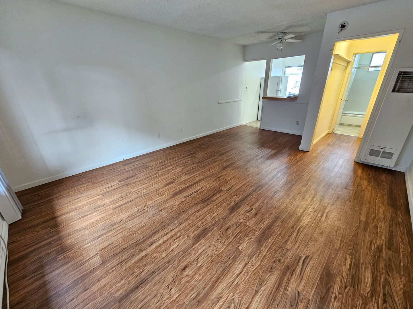Single Apartment with vinyl laminate flooring, refrigerator, stove, located on the 1st floor, laundry room on the property, swimming pool. We will consider a cat.